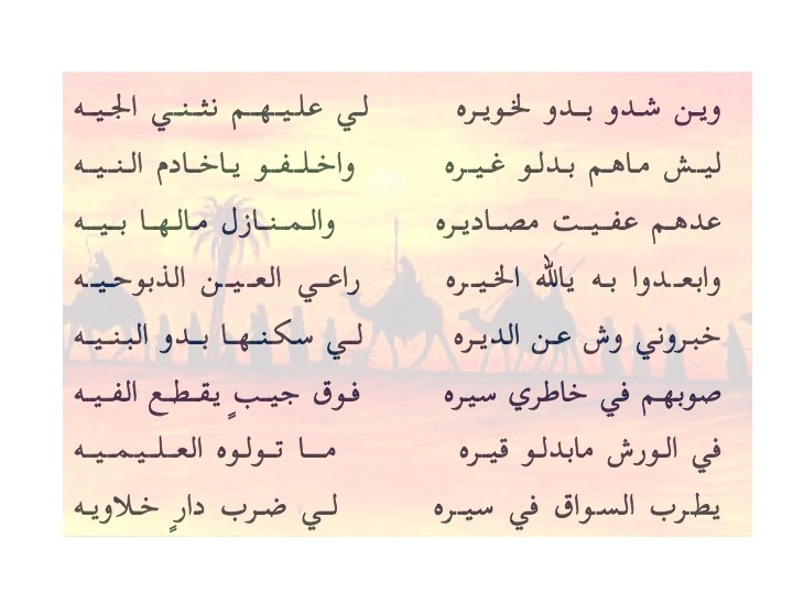 على من اومى بي ومية الحر للهدات يتوق للحباري والصقاقير يدعونة.